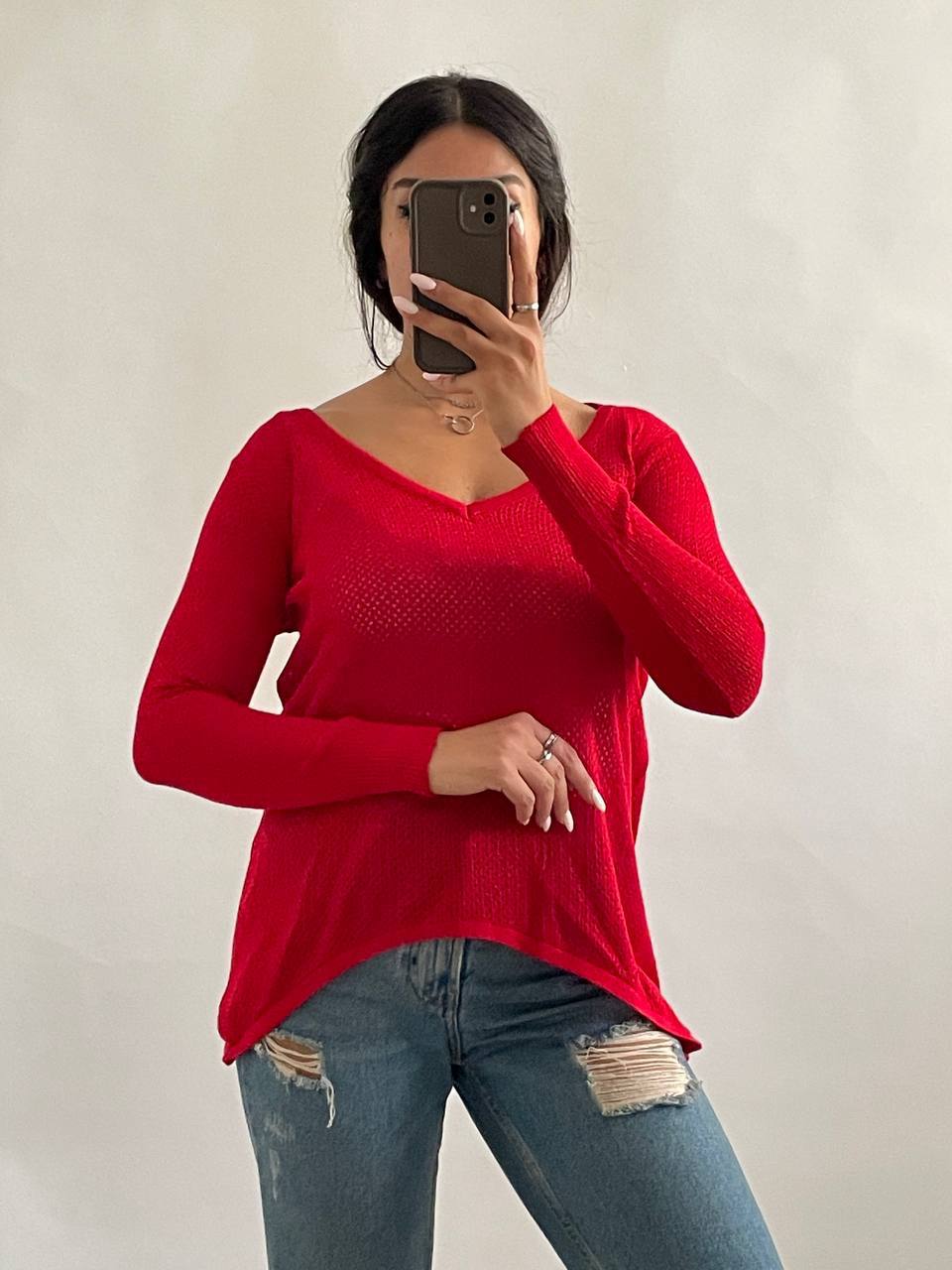 - 👕 بافت آستین بلند با فیت معمولی و یقه هفت (V-Neck).