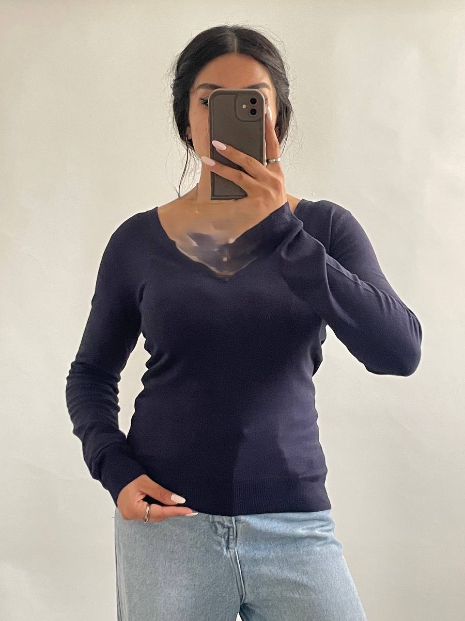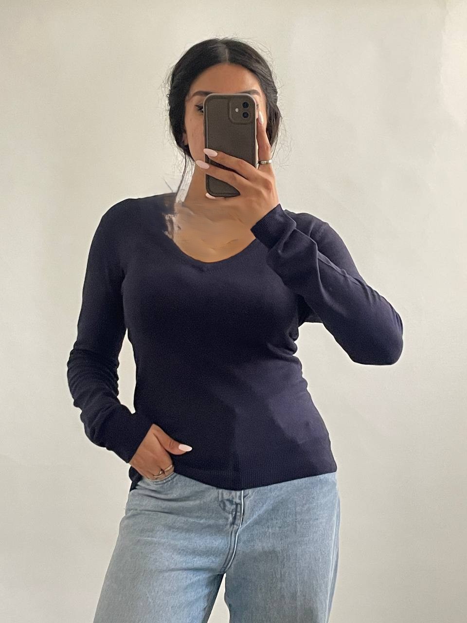 - 👕 بافت آستین بلند با یقه هفت استاندارد (V-Neck) و فیت جذب.
