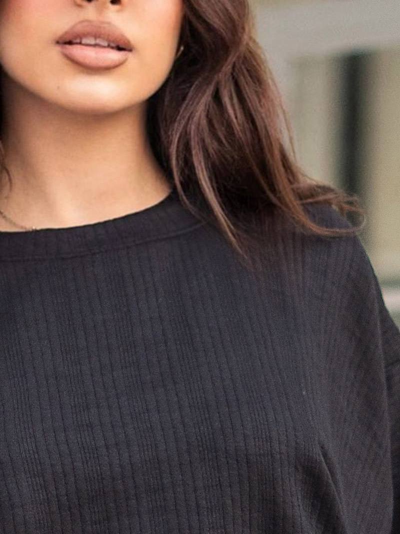 Women's Crop Top Batwing Set and Pants - Ribbed Texture